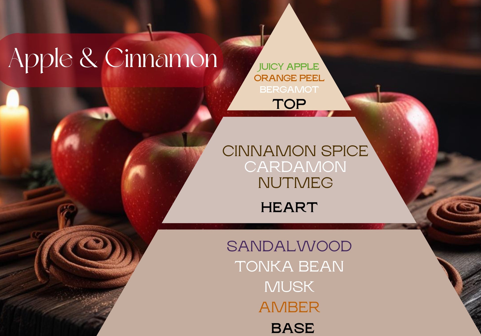 En los rincones tranquilos de una habitación bulliciosa, un suave susurro, una fragante floración. Una esencia de calidez, un deleite acogedor, manzana y canela, un aroma tan brillante. En medio de los huertos donde caen las manzanas, palitos de canela, alineados en alto. Una danza de especias en el aire, una sinfonía de sabores.