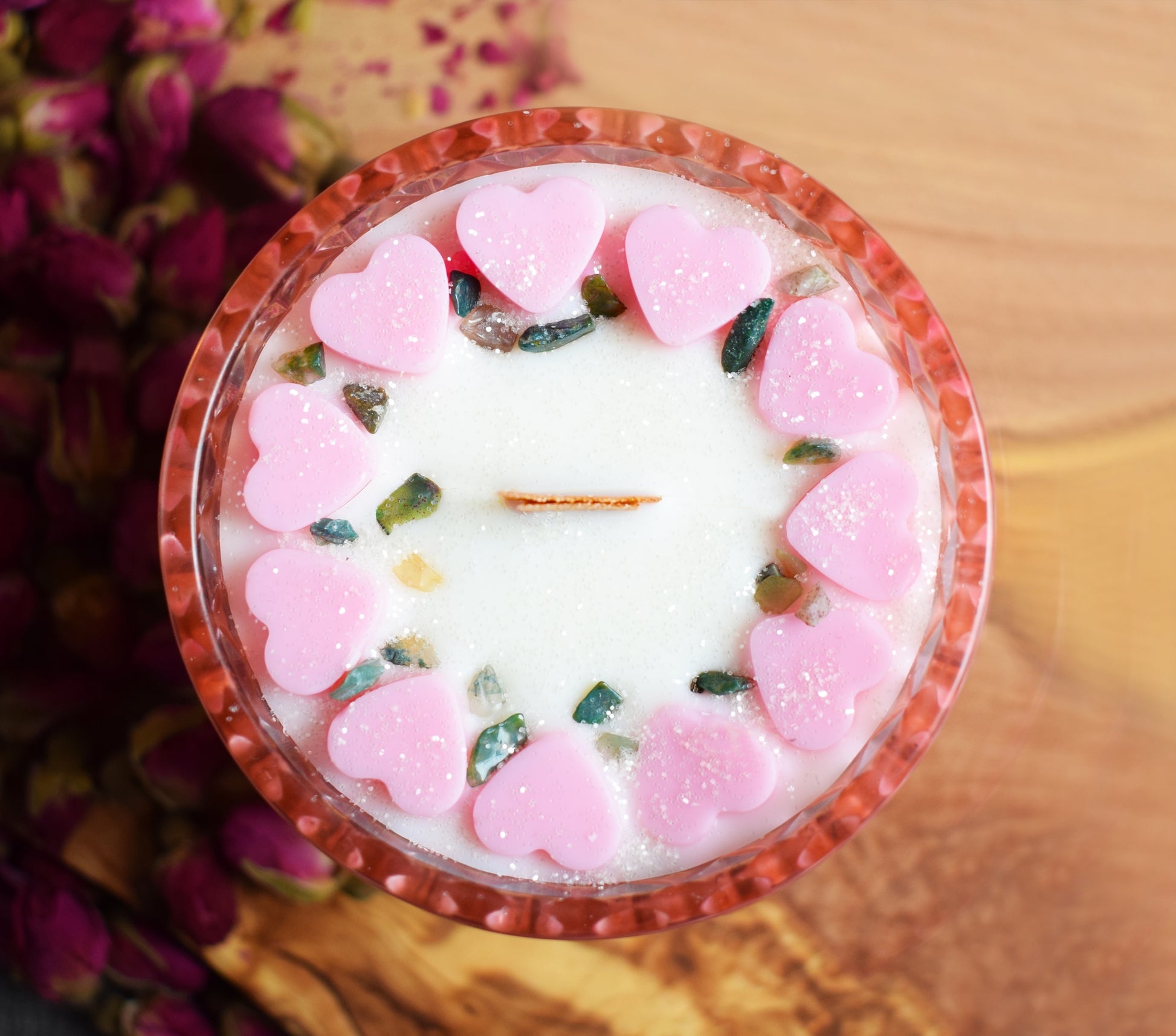 Tarro de vidrio rosa con tapa estilo "bombonera"