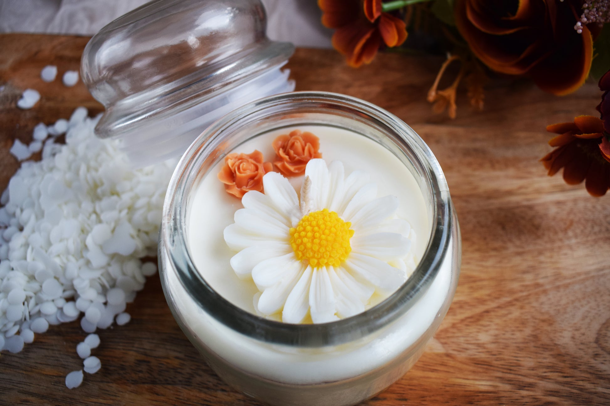 Precioso bote de vidrio con tapa y rosca selladora para las velas más creativas!