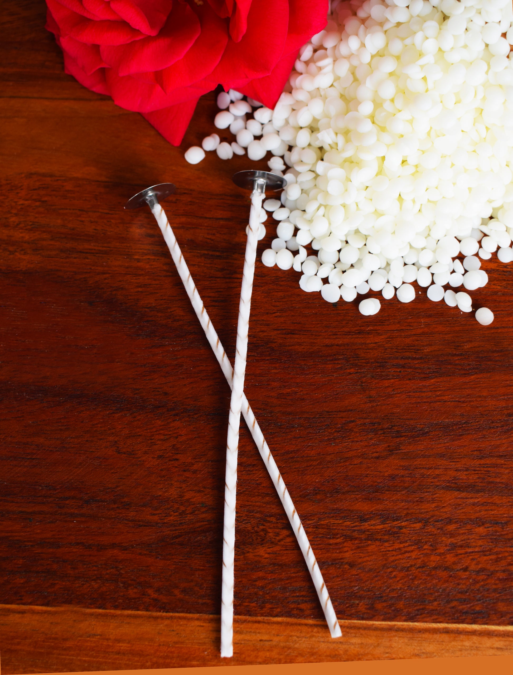 Fabricadas con algodón natural y celulosa. Pre enceradas, listas para colocar en tu recipiente para velas.
